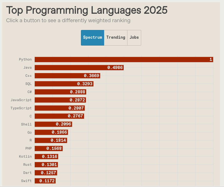 📌 Fonte: IEEE Spectrum – Top Programming Languages 2025