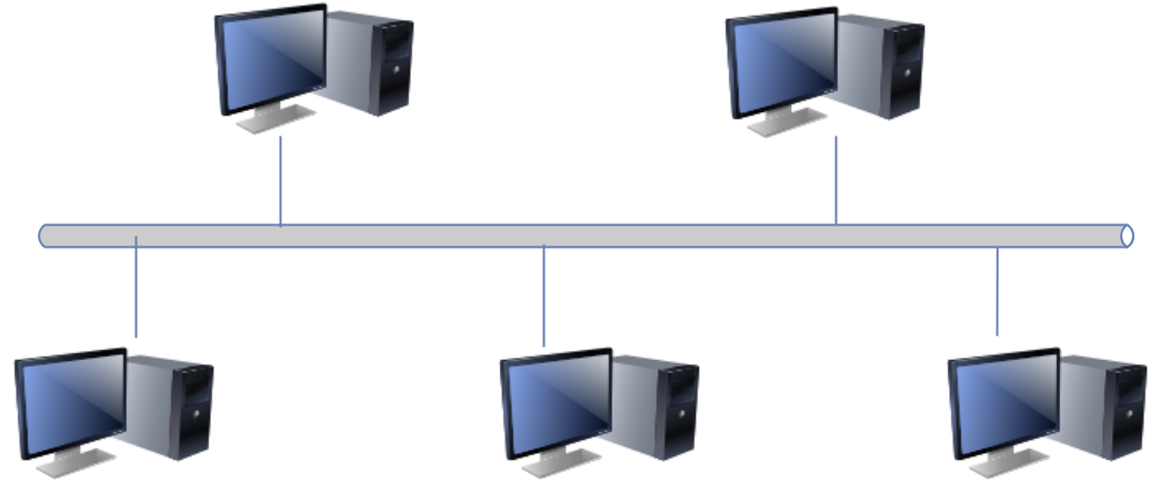 Essa topologia foi mais comum em redes Ethernet antigas, mas hoje em dia é menos usada em favor de topologias como a estrela ou a malha. Ainda assim, pode ser encontrada em algumas redes locais (LANs) menores e em situações específicas.
