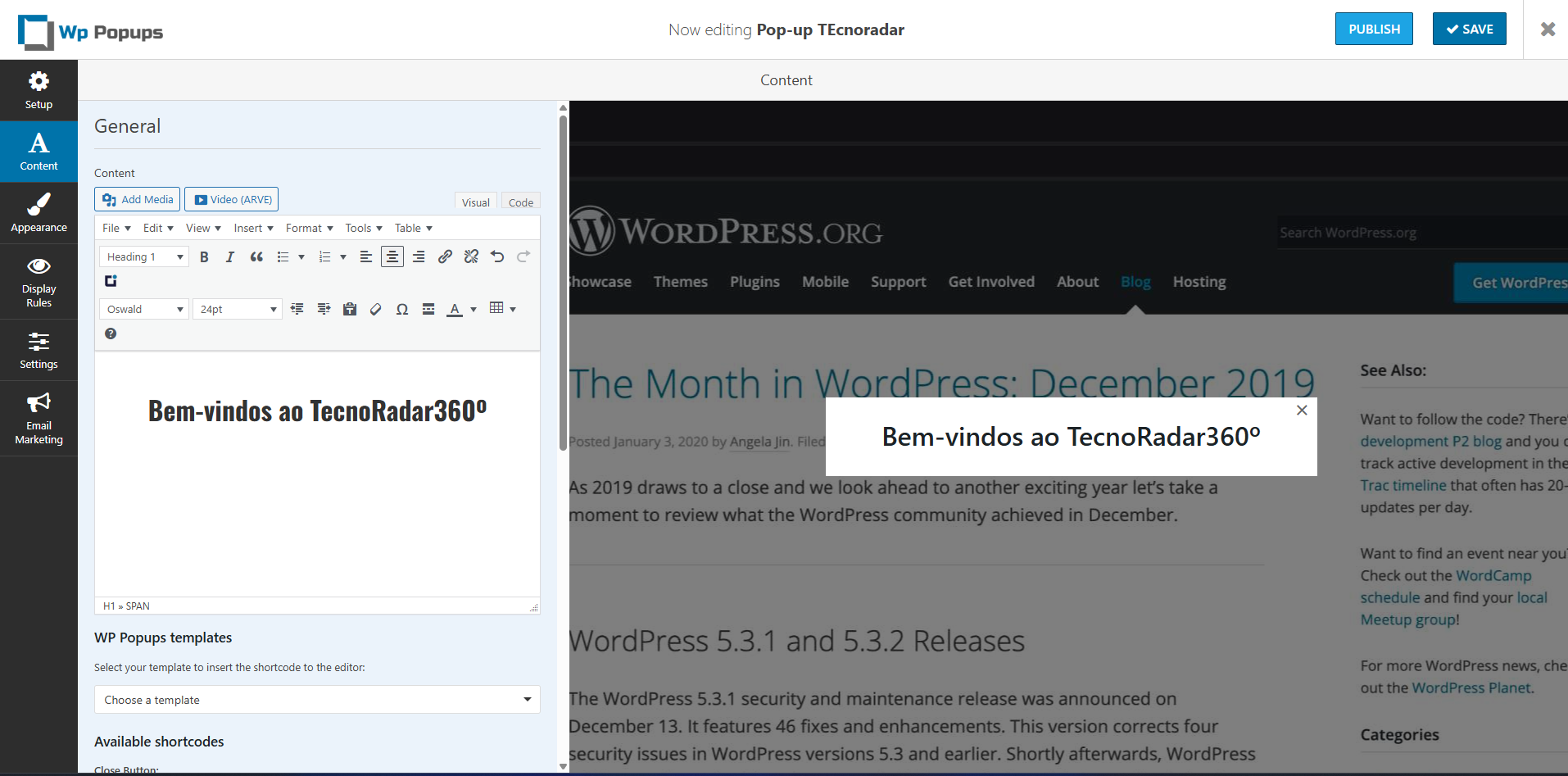 Mas depois de alguns testes, encontrei uma solução leve, gratuita e super prática: o WP Popups – WordPress Popup Builder.